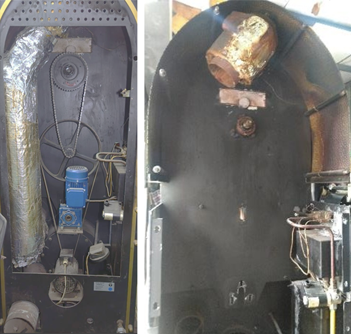 - 抽風系統與冷卻系統共用同一顆馬達,此問題會導致生產時間必須拉長,原生系統是透過管道間的閘口做切換,意味著只要在做冷卻勢必烘焙桶內的無法抽風,當在烘焙時又無法冷卻。